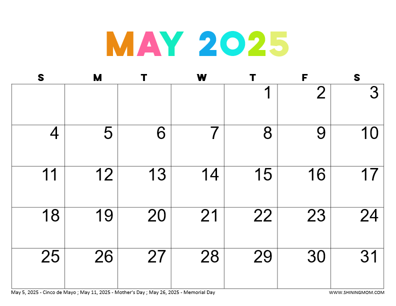Our May 2025 Calendar Printable With Holidays is perfect for keeping track of all your plans and events this month.